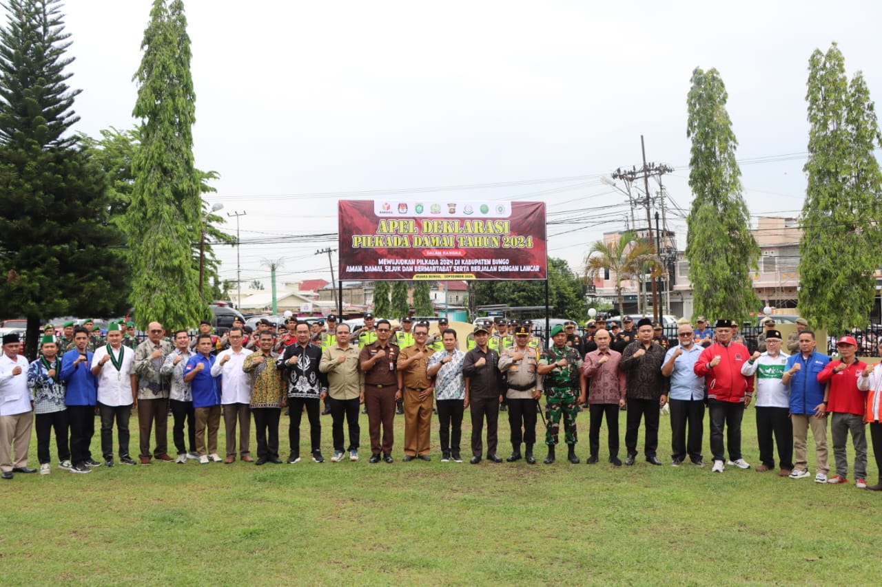 Pasca Apel Deklarasi dilanjutkan dengan penandatanganan deklarasi Pilkada damai di Kabupaten Bungo tahun 2024 oleh Bupati Bungo, Dandim 0416/Bute, Kajari Bungo, Ketua PN Muara Bungo, Ketua DPRD Bungo, Ketua KPU Kab.Bungo, Ketua Bawaslu Kab.Bungo,Ketua FKUB Kab.Bungo, Kedua Padangaan Calon Bupati dn Wakil Bupati, Ketua Tim Pemenangan Kedua Calon Bupati dan Wakil Bupati.