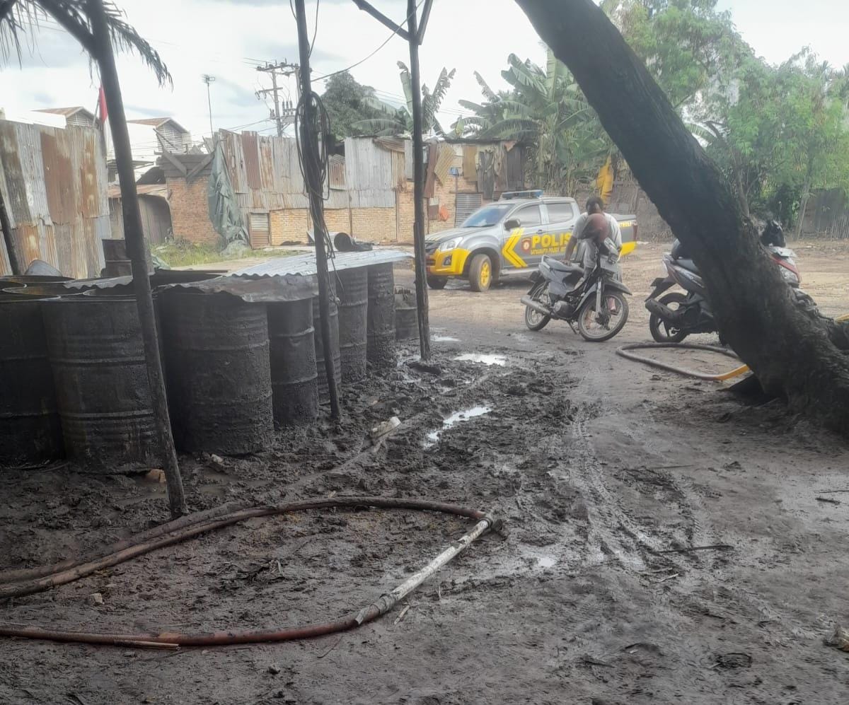 Dilokasi terpantau sejumlah tedmon, drum-drum berisi CPO, serta perlalatan lainnya yang disinyalir dipergunakan untuk menguras atau kencingan dari mobil tangki CPO yang mampir ke gudang ilegal tersebut.