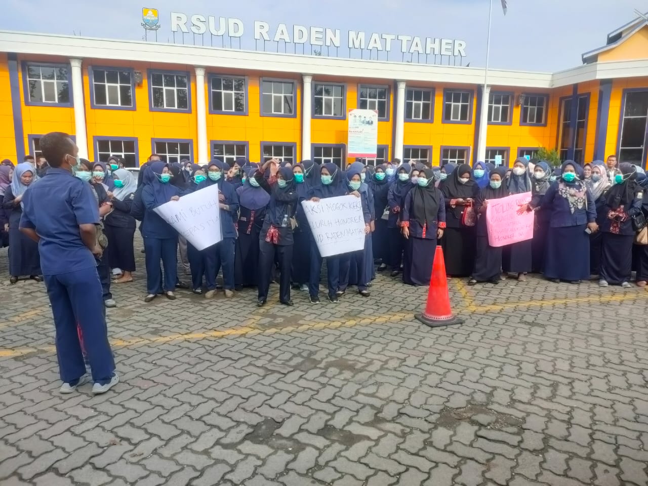 Para honorer yang terhitung mencapai 700 orang itu, berkumpul dilapangan RS dan setelah itu masuk kedalam RS sambil menunggu Direktur RS Mattaher Jambi, Herlambang dan Kepala BKD Provinsi Jambi demi mengetahui nasib para honorer.