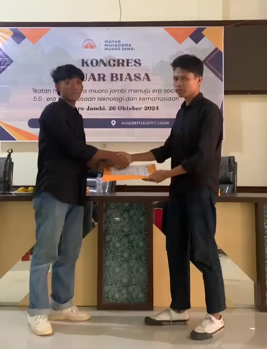 Muaro Jambi – Al Zikri terpilih secara aklamasi sebagai Ketua Umum Ikatan Mahasiswa Muaro Jambi (IMMJ) dalam musyawarah yang digelar di Aula Badan Kepegawaian Daerah (BKD) Muaro Jambi pada Sabtu 26 Oktober 2024.