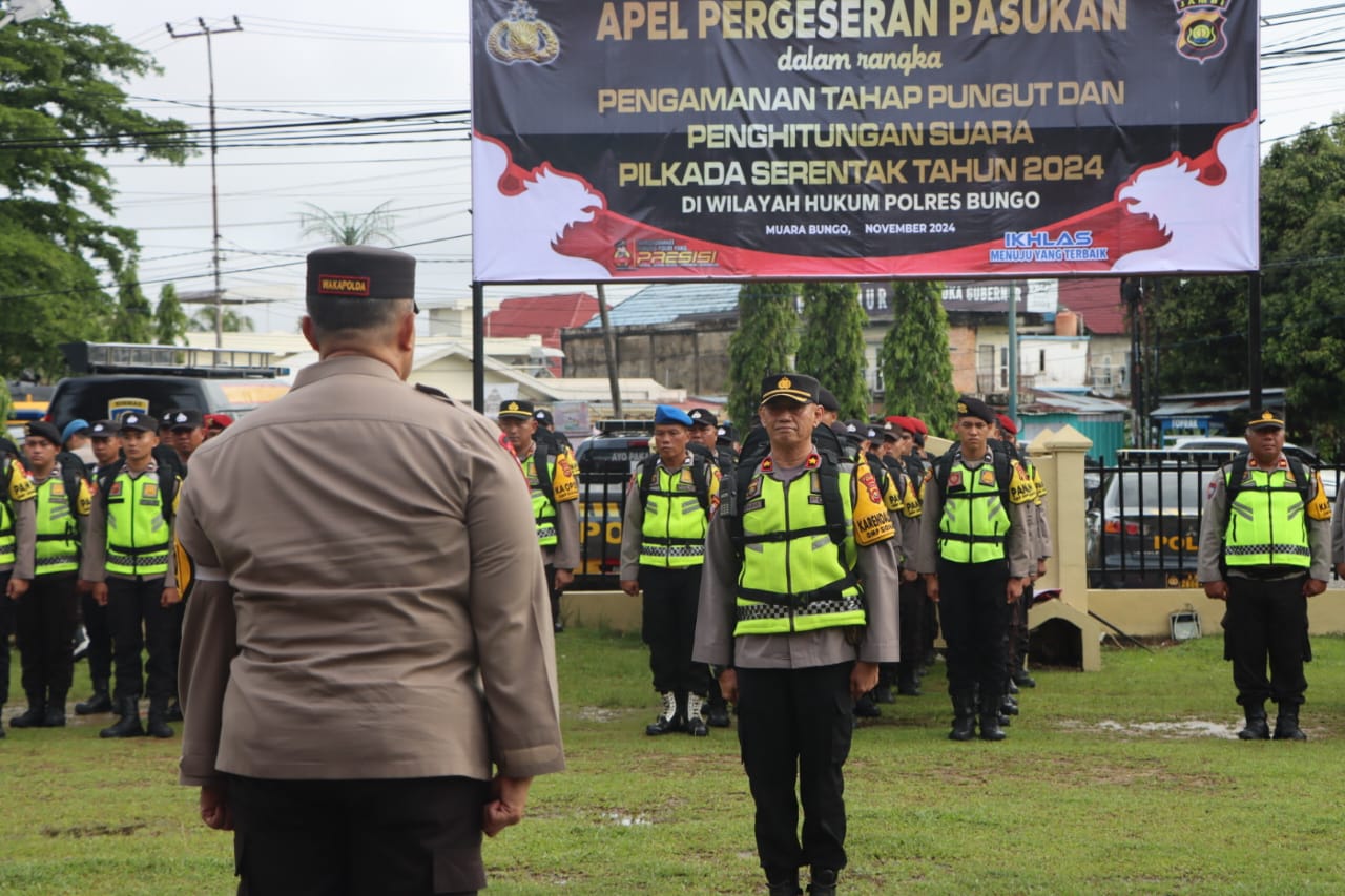 Waka katakan ” Saya datang untuk memastikan bahwa Sumber Daya Organisasi, Personel, Sarpras, Anggaran dan cara bertindak sudah dipersiapakan dan telah siap digunakan semuanya untuk Pengamanan TPS Pada Pilkada Serentak Tahun 2024 di Kab. Bungo OMP tahun 2024″.