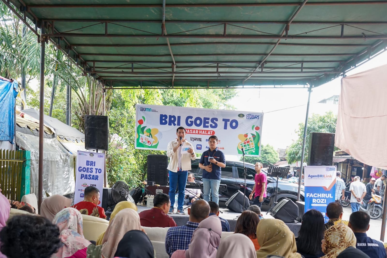 “Seperti dihadiri oleh Bapak Regen selaku Kepala Bagian (Kabag) Perekonomian Sekretariat Daerah Kota (Setdako) Pemko Medan, Kepala Regional Usaha Mikro atau Regional Mikro Business Head BRI Medan Wahid Gunadi, saya sendiri selaku Plt Dirut PD Pasar dan segenap pedagang Pasar Halat,” kata dia