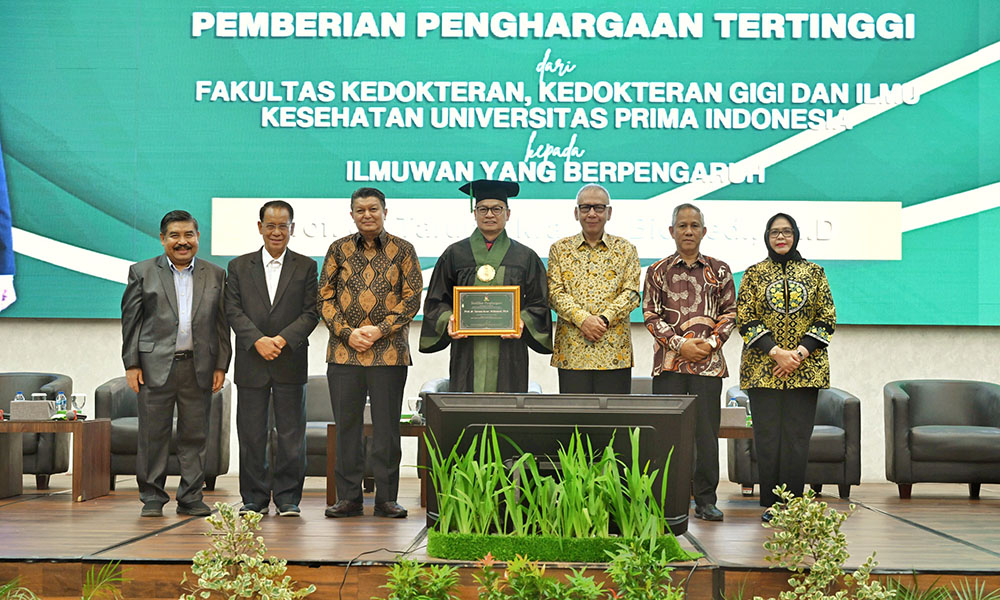 MEDAN – Fakultas Kedokteran, Kedokteran Gig,i dan Ilmu Kesehatan (FKKGIK) Universitas Prima Indonesia (UNPRI) yang beralamat di Jalan Sampul, Medan, memberikan penghargaan tertinggi kepada Prof dr Taruna Ikrar M.Biomed PhD yang saat ini diketahui menduduki posisi sebagai Kepala Badan Pengawas Obat dan Makanan (BPOM) RI sejak tahun 2024.