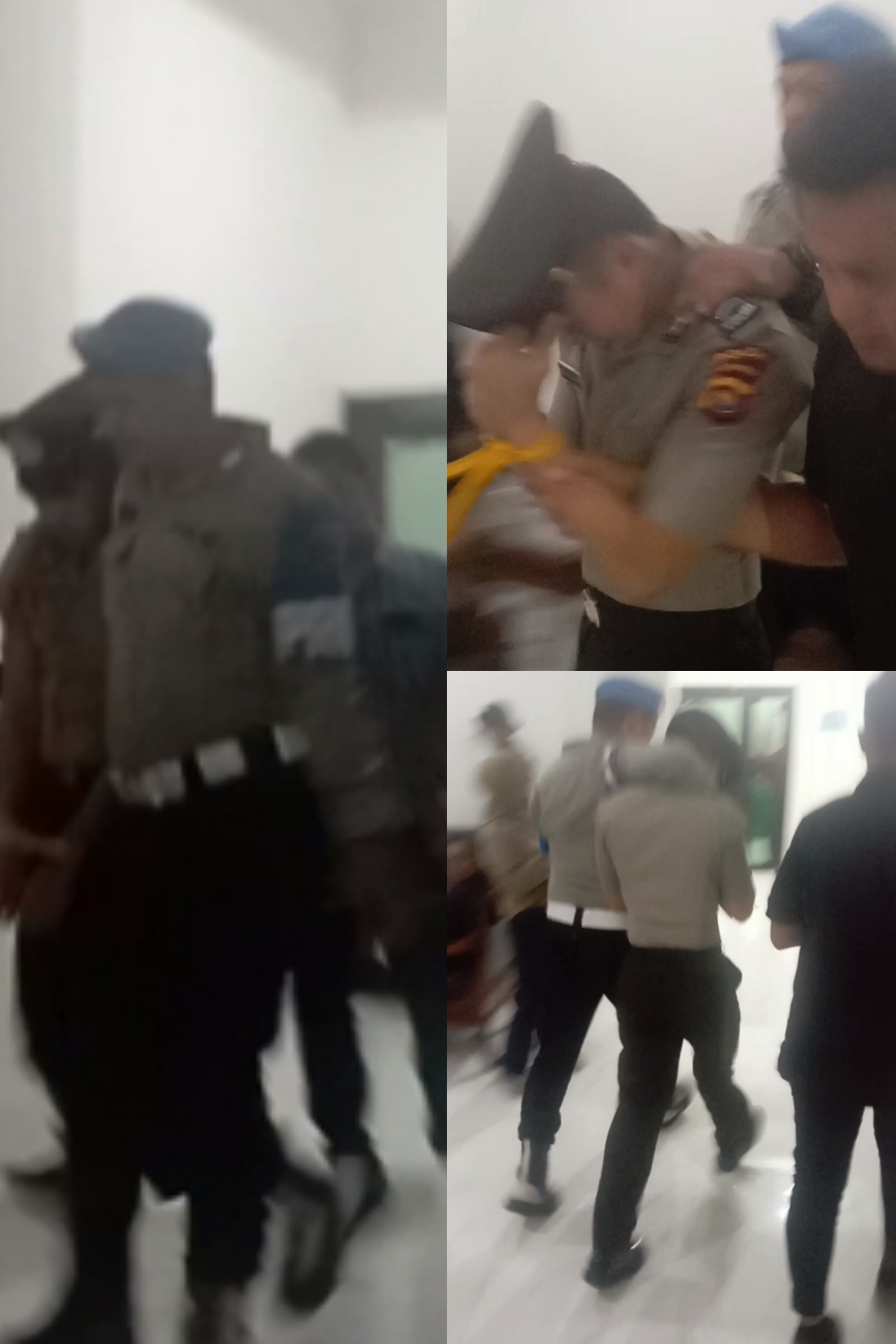 Baru pada pukul 21.30 WIB, pintu itu terbuka. Tidak ada langkah tegap. Dua sosok yang seharusnya menjadi pelindung masyarakat itu keluar dengan kepala tertunduk dalam. Diapit ketat oleh personel Propam berbaret biru, langkah mereka cepat, seolah ingin segera lari dari sorot mata yang
