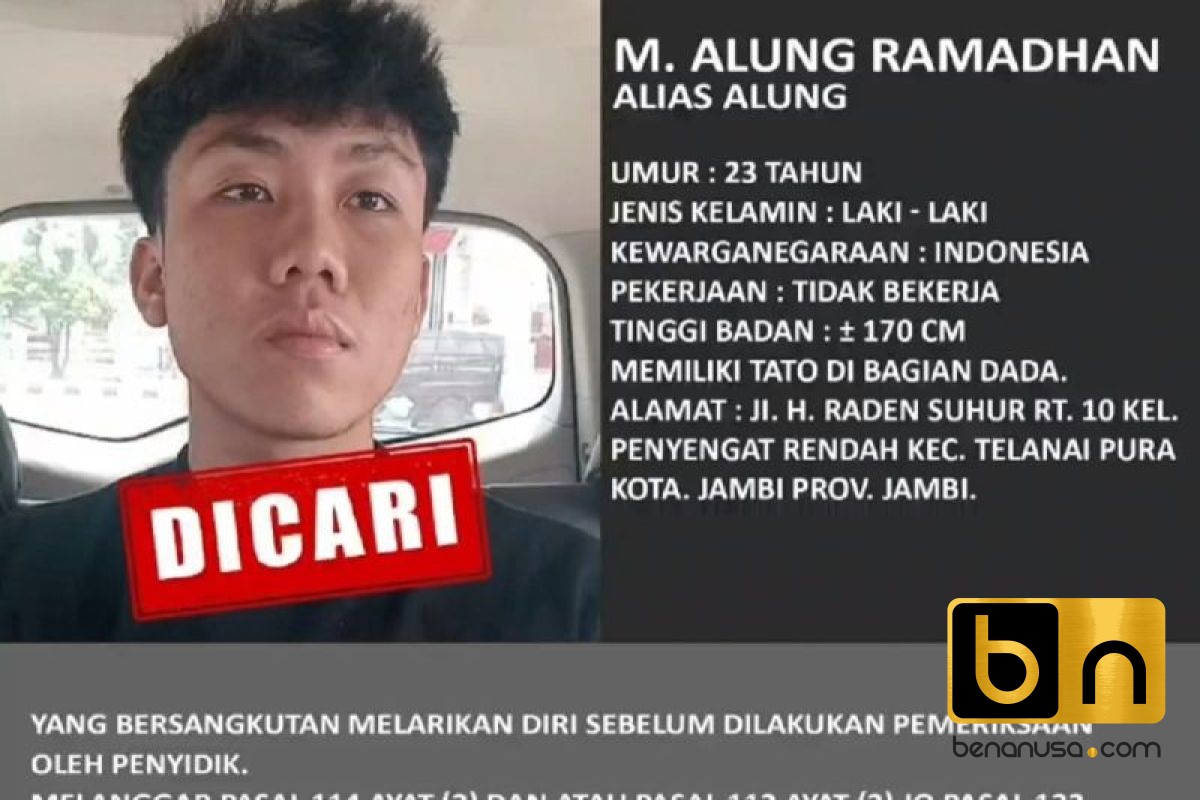 Benanusa.com, Jambi – Polda Jambi meminta bantuan Mabes Polri untuk menangkap Alung, buronan kasus kepemilikan 58 kilogram sabu-sabu. Alung kabur dari ruang penyidik Ditresnarkoba pada Oktober 2025.